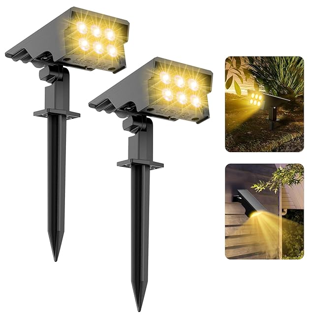 MEIKEE ガーデンライト ソーラー ソーラーライト 屋外 防水 ガーデン ソーラースポットライト パスライト 明るい 2700K 電球色led IP65防水 光感センサー 高輝度/中輝度/低輝度モード 3種類点灯モード 自動点灯/消灯 庭園灯 ガーデンニングライト 庭 芝生 車道 植木 歩道 駐車場 玄関先 ガレージ 防犯対策 景観照明 地面挿入 壁掛け【2個セット】適格請求書発行ok
