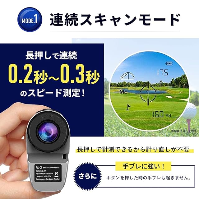 ✅【シンプルな3種類のモード】モード1:角度測定+通常スキャンモード(RAENGEボタンを長押しで連続測定) モード2:ピンシーク機能モード(複数のターゲットの中から一番近いものをターゲットとして計測する機能) モード3:スロープ補正モード(高低差を含めた距離と除いた距離を測定します)