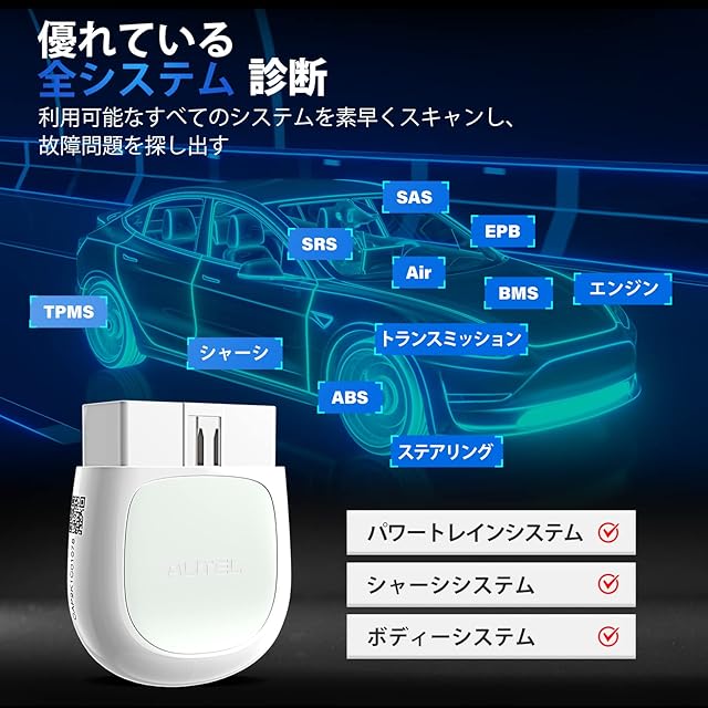 商品名:Autel AP200 obd2 故障診断機 自動車スキャナー フルシステム診断 AutoVIN、オイル/EPB/BMS/SAS/TPMS/DPFリセット IMMOサービス ファミリーDIY用 iPhone Android 使用可能