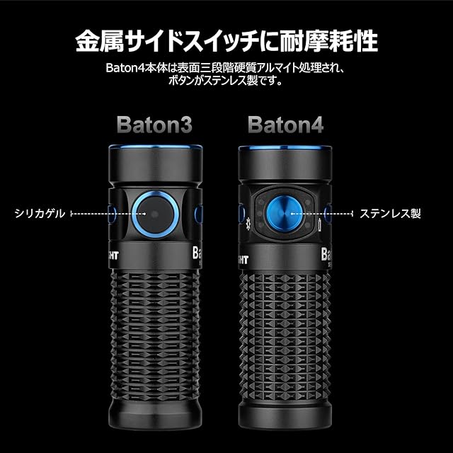 {1300ルーメン高輝度+170メートル長照明距離} Baton 4は、お客様のニーズに合わせてBaton 3をバージョンアップした新バージョンです。最大出力が1300ルーメンで、最長照明距離は170mまで達しています。均一で柔らかな光を出力し、ユーザーの近距離照明ニーズを満たします。また、TIRレンズを使用することで美しい配光を実現し、使い勝手の良さを実現しています。家庭用、メンテナンス用、ハイキング用、キャンプ用、アウトドア用、非常用などに最適なEDC懐中電灯です