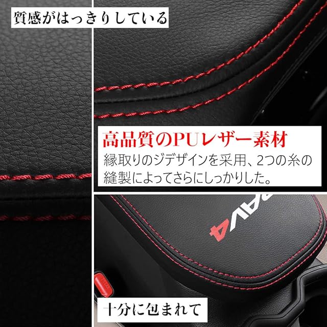 ❸【フィット感良好】RAV4エンブレムにも採用されます、黒いPUレザーと赤い糸が組み合わせて、 耐久性が良い上に車の高級感を損なわなく、RAV4アームレストのための完全な保護を提供します。