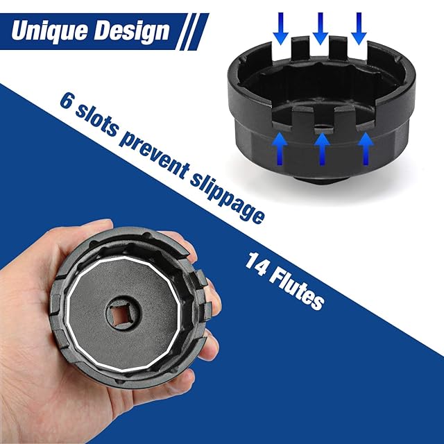 【使用場面】トヨタカートリッジ式オイルフィルタの専用脱着工具です。エクステンションバー付きでちょっと奥まった箇所にも届きます。フィルタとレンチの破損を防ぐため、フィルターレンチの底部が確実にオイルフィルタに接触してからご使用ください。