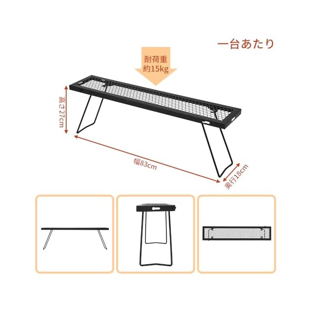 【仕様】使用時サイズ:83x18x27cm 重量:約1.9kg 耐荷重:15kg(平均静止荷重)