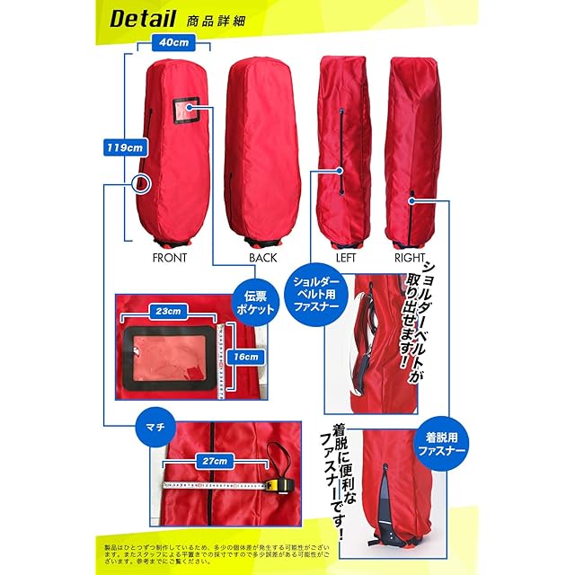✅【 マチありゆったりサイズのカバー 】9.5型、48インチもすっぽり収まるゆったりサイズ。欧米サイズにも対応。27cmのマチありでキャディバッグのフォルムにフィット。宅配便の伝票が入るポケット付きで繰り返し使用可能。