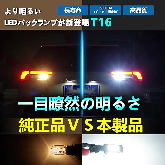 新型 T16 LED バックランプ 爆光 高輝度 5600ルーメン キャンセラー内蔵 シングル 後退灯 テールランプ 12V バックライト 無極性 6500k ホワイト 2個セット