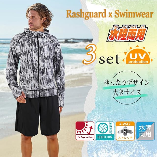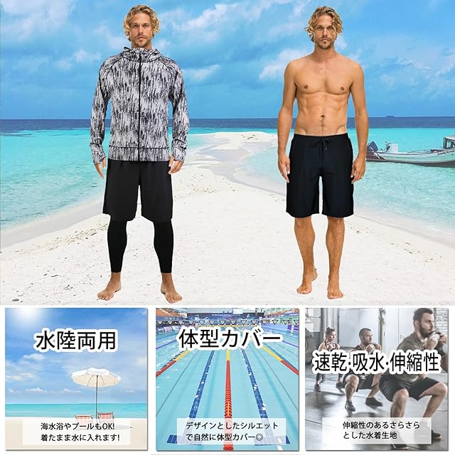 商品名:[ARMOTO] ラッシュガード メンズ 水着 長袖 パーカー レギンス サーフパンツ フィットネス [UVカット UPF50+・吸汗速乾] 水泳 水陸両用 大きいサイズ