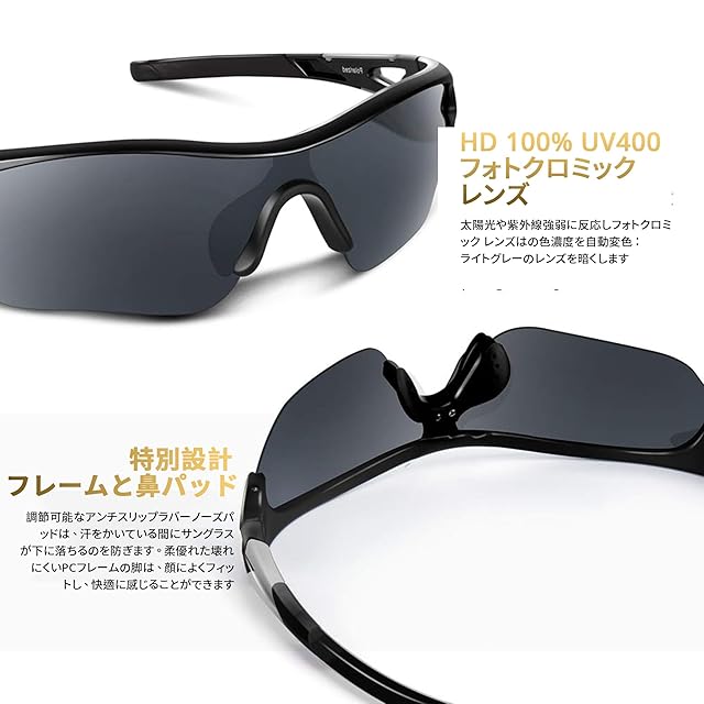 柔らかいフレーム素材: 軽量なTR90リムレスジャケットフレームの設計は剃りにくく、耐衝撃性、耐傷性、耐久性に優れた壊れにくいです。汗をかいたときにサングラスが落ちるのを防ぎ、顔にしっかりとフィットする柔軟滑り止めゴム鼻パッド。サングラス 夜間運転用は高品質で超軽量、強度、柔軟性、安定性が高く、高速スポーツ時にクリアな視界を提供しており、日本人のために設計されています