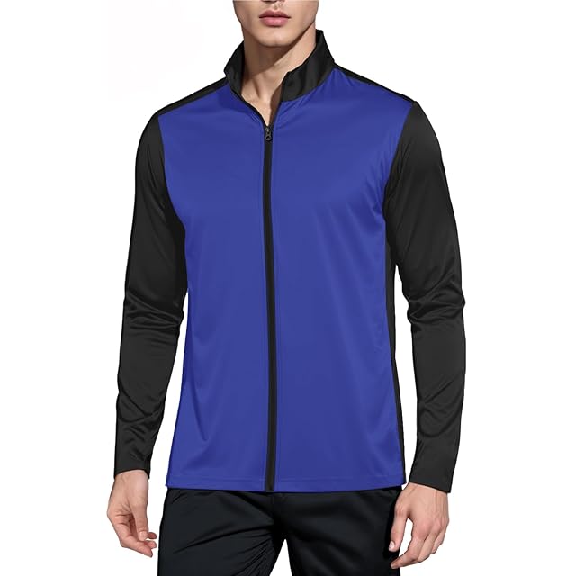 [Rmally] ラッシュガード メンズ 長袖 水着 [伸縮性・速乾・UVカット] ラッシュパーカー ジップアップ スタンドカラー UPF50+ S~2XL 大きいサイズ 紫外線対策 接触冷感 体型カバー プール 海 海水浴 サウナ 水陸両用 (ブラック&ブルー,L)