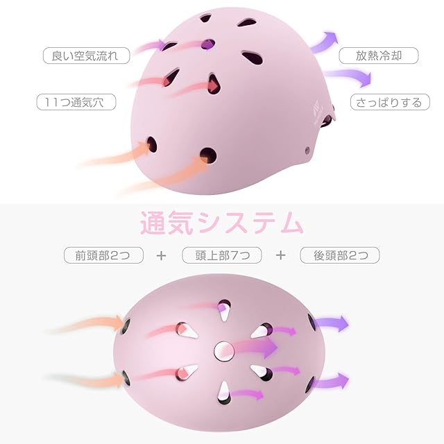 【子供も大人もしっかり守れる優れた品質】外殻は耐熱性・耐衝撃性・光沢性などの特性をもって高密度ABSを採用します。内殻は軽くて、衝撃にも強い、断熱性も優れ、着火したとしても有害物質を発生させないので環境に優しいEPSでもあります。外部からの衝撃をヘルメット全体で吸収して、頭に伝わる衝撃を最小限に食い止めて、子供でも大人でも、転倒時に頭部の安全性を追加させます。