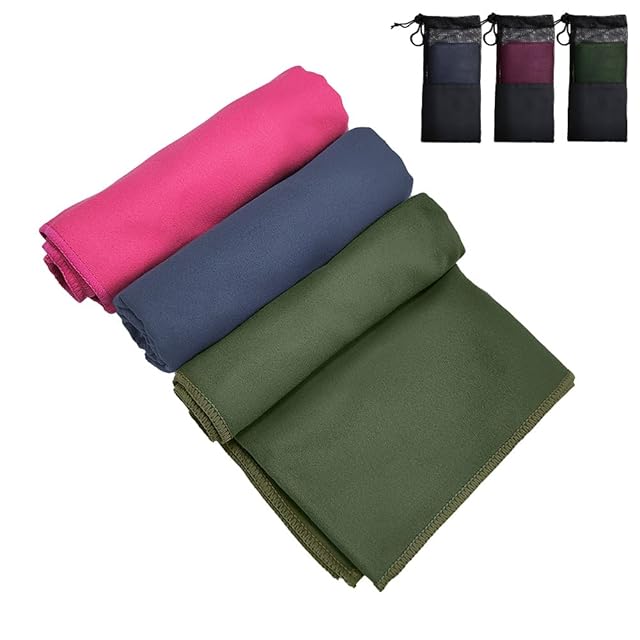 超吸水×速乾 マイクロファイバータオル|髪・スポーツ・ジム・水泳・旅行用 柔らかいバスタオル【耐久性 軽量 収納袋付き】80×40cm (スレートグレー+オリーブドラブ+ローズレッド)