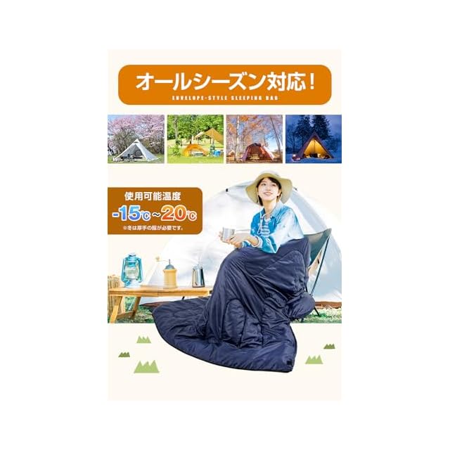 【オールシーズン対応・ゆったりサイズ感】約210*75cm 収納サイズ:約40×20cm 重量:1kg/1.4kg。1kgの場合、適応温度:最低使用温度:0℃ 快適使用温度:10℃-25℃(自身の暑さと寒さの感覚によって使用)。1.4kgの場合、最低使用温度-15℃で超保温。 夏用寝袋 と 冬用寝袋 を揃い、ほとんどのお客様のニーズを満たす、季節や用途により、選べ頂けます。また寝袋は封筒型で、内部に余分なスペースがあり、中で手足を伸ばしたり、楽に寝返りを打てますので、窮屈感が全くありません!