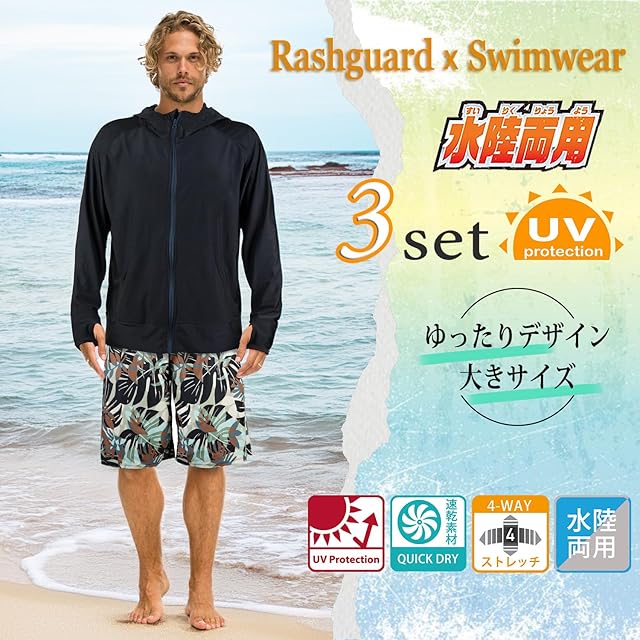 商品名:【ARMOTO】 ラッシュガード メンズ 水着 長袖 パーカー レギンス サーフパンツ フィットネス [UVカット UPF50+・吸汗速乾] 水泳 水陸両用 大きいサイズ