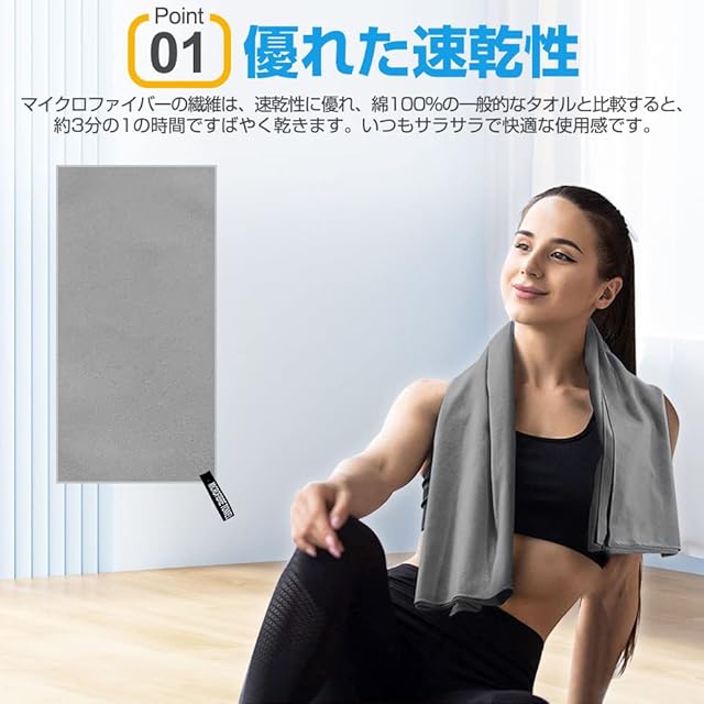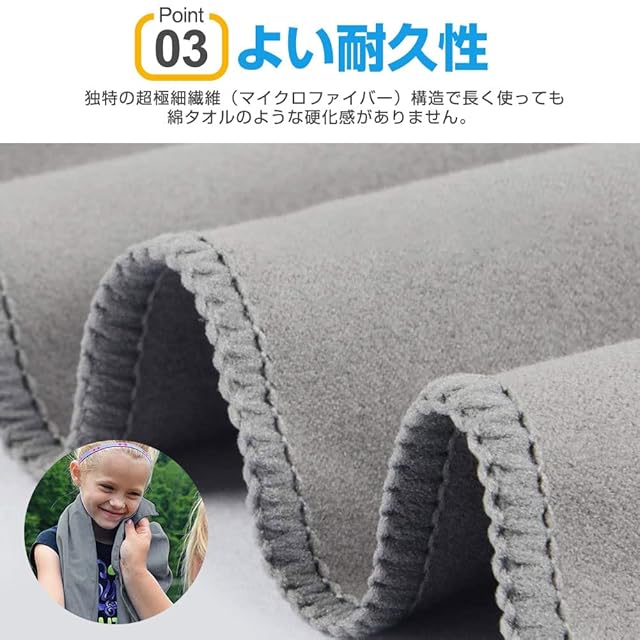 【超吸水・速乾・抗菌】見た目が薄くても吸水性に優れ、タオル専用のふわふわなマイクロファイバー繊維を使った吸水速乾タオル。極細繊維で肌触りもシルキーです。抜群の吸収力のうえ、軽くて肌触りも良く、耐久性も優れています。カビを防ぎ抗菌処理を施しました、汗を吸っても安心、濡らしたタオルに雑菌が繁殖するのも防いでくれます。