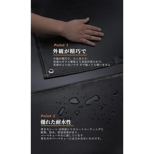 商品名:焚き火シート スパッタシート 焚き火台シート 耐熱 防炎 耐火シート ガラス繊維 キャンプ 芝生保護 薪ストーブ バーベキューコンロ 焚き火用… (【第3世代ブラック】60×80)