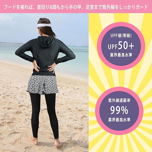 【特徴】水陸両用 吸汗速乾 接触冷感 UPF50+ 体型カバー 4WAYストレッチ ゆったりデザイン