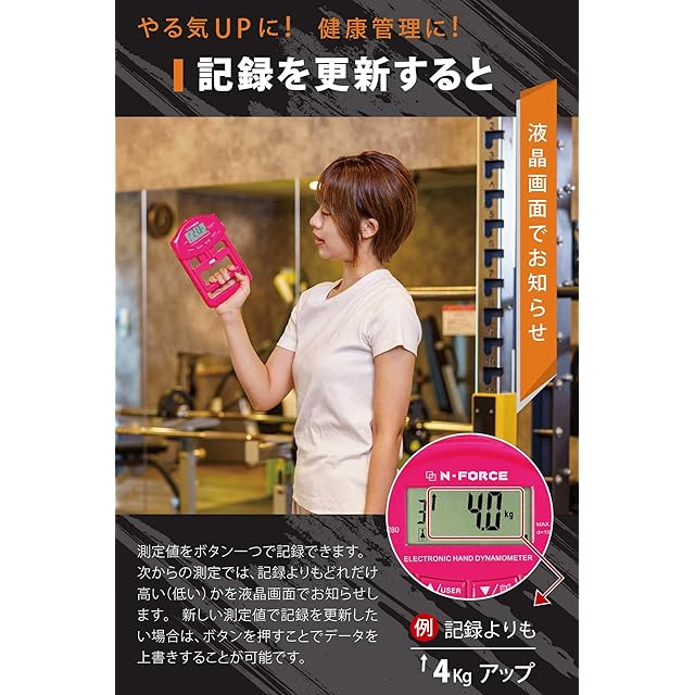 商品名:【 記録更新がひと目でわかる 】 N-FORCE(エヌフォース) 正規品 デジタル握力計 握力測定 書付 ピンクブロッサム