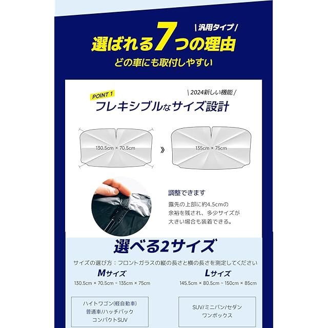 商品名:konciwa【2024新版&曲がる中棒】 サンシェード 車 フロント 傘型 車用サンシェード 折り畳み式 強力な10本骨逆折り式 車用パラソル 自動車用サンシェード バックミラー開き口 遮光 遮熱 取り付け簡単 収納便利 レザーバック付き フロントガラス 紫外線対策 遮光性よい 車中泊 仮眠 暑さ対策… (M-S(135*75cm幅の調整可能))