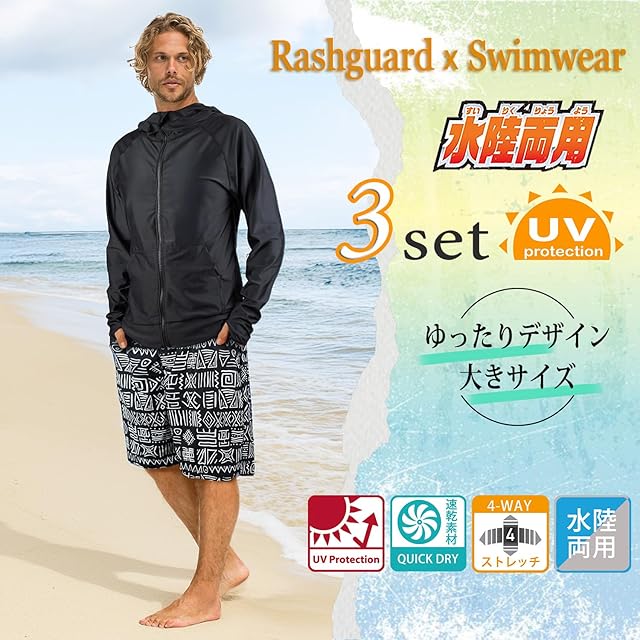 商品名:【ARMOTO】 ラッシュガード メンズ 水着 長袖 パーカー レギンス サーフパンツ フィットネス [UVカット UPF50+・吸汗速乾] 水泳 水陸両用 大きいサイズ