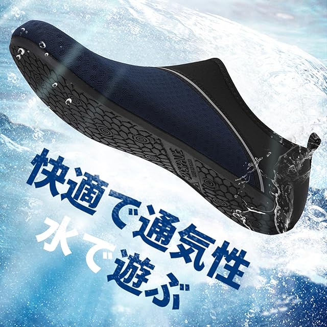 履き心地がいい:素足の感覚をそのままで! 超軽量マルチ機能性スキンシューズ。大人から子供までのサイズが揃えおるマリンシューズ。アッパーにはネオプレーンを採用することで、優れた伸縮性と排水性と通気性が期待できる。また、ソックスのような柔軟性で、履いても素足みたいな履き心地。弾力・伸縮性素材で足によくフィットし履き心地抜群。