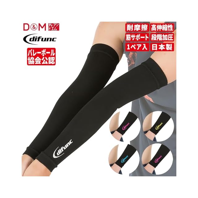 D&M ディーアンドエム アームスリーブ アームカバー 1ペア入り ブラックXパープル Sサイズ D-7000 耐摩擦 段階着圧 吸汗 バレーボール 野球