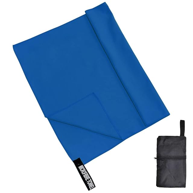 速乾タオル 髪 マイクロファイバータオル バスタオル スポーツタオル ジムタオル スイミングタオル セイムタオル 旅行タオル 超吸水 柔らかい 耐久性 速乾 軽量 収納袋付き 80x40cm (ブルー)