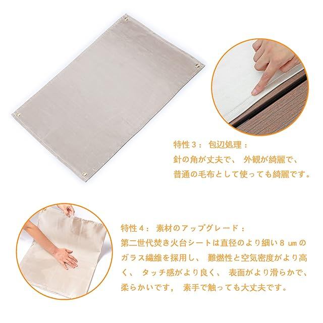 【チクチクしない】第二世代焚き火シート80*100cm,重量約420g,技術のアップグレード,外観が精巧で、人気が高いです,普通のガラス繊維より表面が滑らかで、柔らかく、手で触れて摩擦が生じることを防止します,素手で触っても大丈夫です。