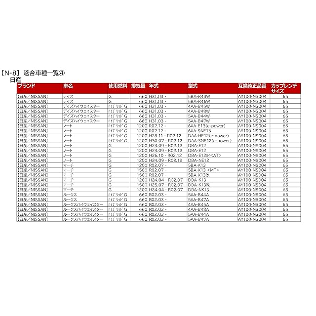 [代表適合車種] ノート、キューブ、セレナ、エクストレイル