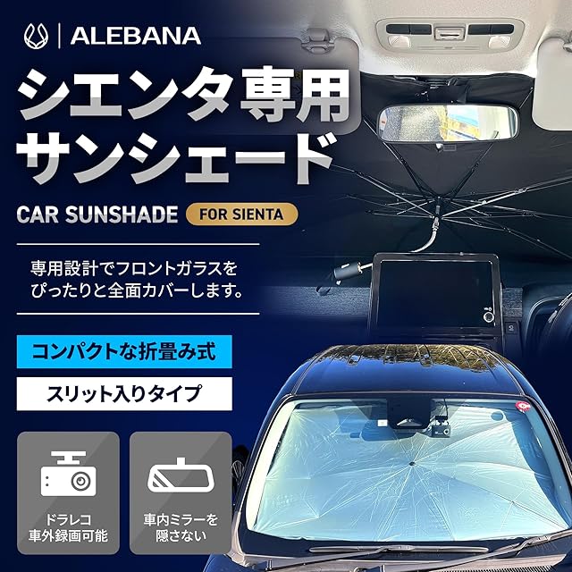 ALEBANA シエンタ サンシェード 10系 【ドラレコ車外録画対応】【2025年版】 車 フロント 新型シエンタ 車用サンシェード 日除け 傘 アクセサリー カー用品 便利グッズ 車内 (シエンタ 10系)