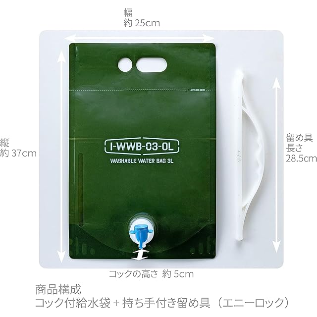 岩谷マテリアル(Iwatani Materials) 水タンク ウォッシャブルウォーターバッグ 3L 2個セット オリーブグリーン WWB-3OL 注ぎやすいコック付き キャンプ レジャー 防災 約33×29×14cm