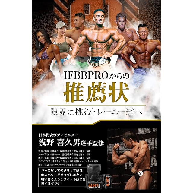 【IFBB PROはじめ多くのトップ選手が愛用】JBBF日本代表ボディビルダー浅野喜久男が監修。IFBB PROの石本ファルーク選手、湯浅幸大選手、竹本直人選手、ポパイ関根選手、廣川翔一選手、市川信行選手、倉地美晴選手、YUME選手、関西のトップフィジカー中村直輝選手、日本有数のトップフィジカーがALLOUTブランドを愛用。