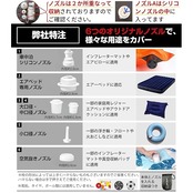 【6つのノズルで様々な用途をカバー】 弊社オリジナルのエアーベッド専用ノズルなど6つのノズルを用意。キャンプのインフレーターマット、エアークッションはもちろん、BBQの火起こしの送風、夏の浮き輪など様々な用途で活躍します。※製品によってはどのノズルもしっかりハマらない可能性がございます。その場合は手で押さえながらご使用ください。