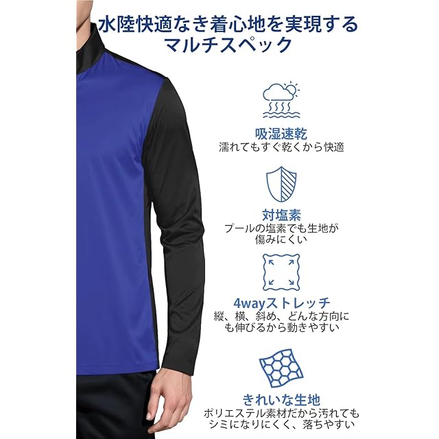 【優れた生地】85%ポリエステル、15%ポリウレタン水着素材で、紫外線対策、伸縮性、接触冷感、水陸両用です。ラッシュガード メンズ は様々なシーンで大活躍で、ランニング、サイクリング、海・プール、アウトドアなどシンプルカラーで着こなしやすさ抜群です。