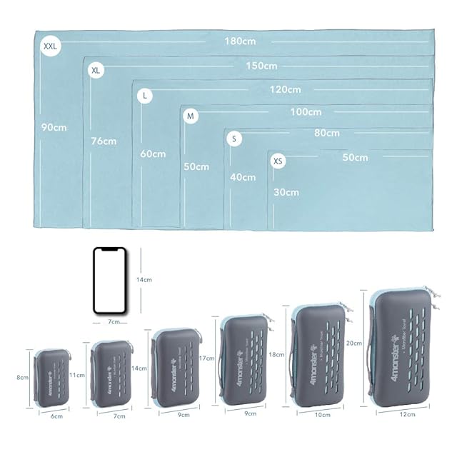 ◆ 【各収納ボックスに1枚タオル】:この速乾タオルには10 色あり、各色には6サイズがあります。XSサイズ: 30*50(cm)、Sサイズ: 40*80(cm)、Mサイズ: 50*100(cm)、Lサイズ: 60*120(cm)、XLサイズ: 75*150(cm)、XXLサイズ: 90*180(cm)、各タオルには収納ボックスが付いています。あなたがこれを買うとき、好きな色と望むサイズが選ぶことができます.