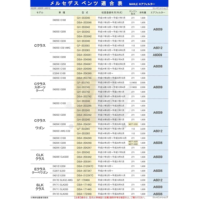 ?適合車種【Cクラス (W204 C204) C180 C200 C250 型式 DBA-204047 DBA-204048 DBA-204049 DBA-204349】【Cクラス ワゴン (W204) C180 C200 C250 型式 DBA-204247 DBA-204248 DBA-204249】