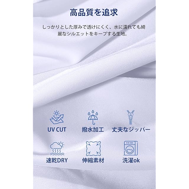商品名:[Rmally] ラッシュガード メンズ 長袖 水着 [伸縮性・速乾・接触冷感・UVカット] フルジップ スタンドカラー ラッシュパーカー UPF50+ 紫外線対策 水陸両用 ラッシュガード メンズ 大きいサイズ 10色 S~2XL (ホワイト&S)