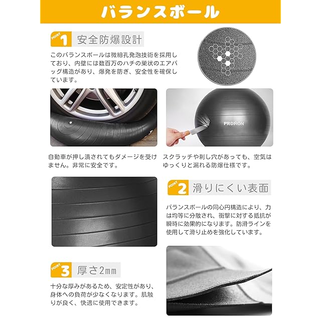 商品名:PROIRON バランスボール ばらんすぼーる 65cm ピラティスボール25cm 2点セット