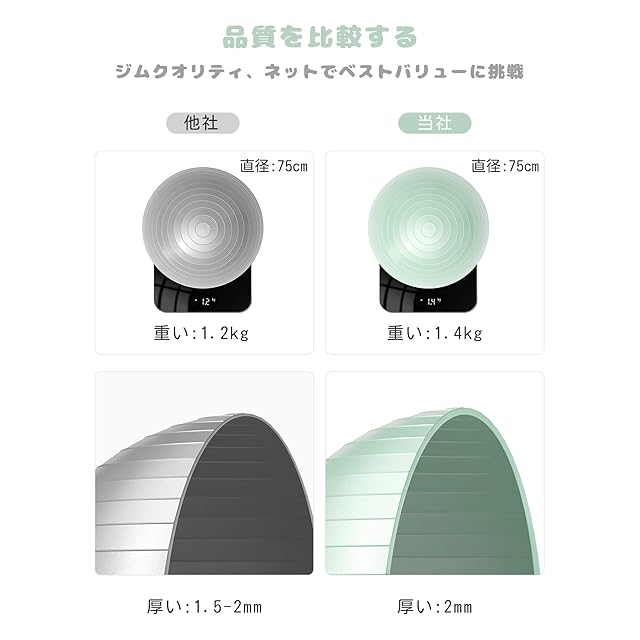 【SGS認証取得】 バランスボールは3サイズ(55cm: 1kg、65cm: 1.2kg、75cm: 1.4kg)があり、ほとんどの市場の製品よりも重く設計されています。荷重耐性は300kgで、滑り止め機能と真の爆発防止性を備え、安全にご使用いただけます。