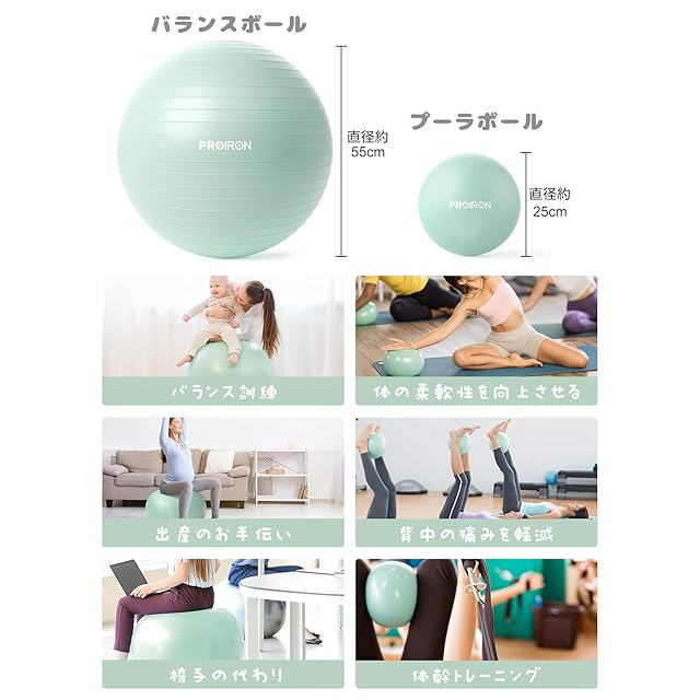 商品名:PROIRON バランスボール ばらんすぼーる 55cm ピラティスボール25cm 2点セット