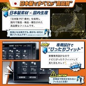 【スムースタッチ加工】:特殊コートにより、地図の操作でも指のひっかかりが少なく、ナビ操作を快適にします。 【傷つき防止】:国内基準の鉛筆硬度3Hをクリアしたフィルムで、引っかき傷などの細かな傷から画面を守ります。 【気泡防止】:弊社独自のシリコン吸着素材により、気泡は指やカードで簡単に押し出すことができます。貼り付けを失敗した場合でも貼り直しが可能です。