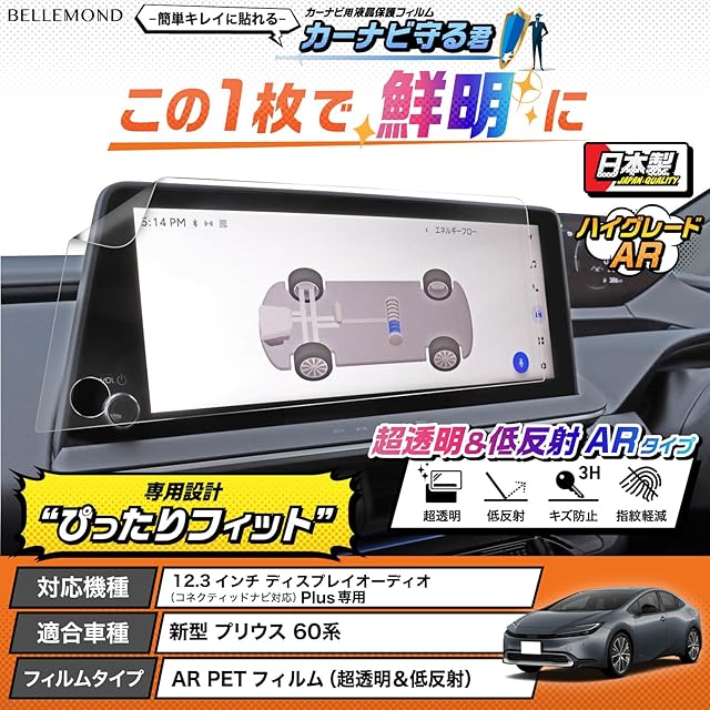 ベルモンド 新型 プリウス 60系 |PETフィルム|超透明&低反射タイプ|ナビ フィルム 12.3 インチ ディスプレイオーディオ 【 カーナビ守る君 】日本製 指紋防止 ARフィルム 保護フィルム カーナビ アクセサリー TOYOTA PRIUS BELLEMOND B0890