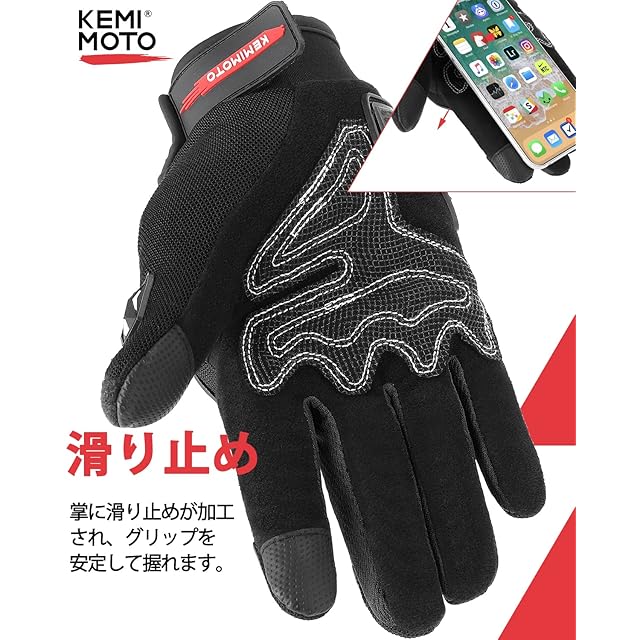 商品名:KEMIMOTO バイク グローブ 夏 メッシュ 通気 バイク用グローブ 軽量 スマホ対応 夏用グローブ オートバイ手袋 滑り止め 耐衝撃 プロテクト 春夏秋 レッド L 402
