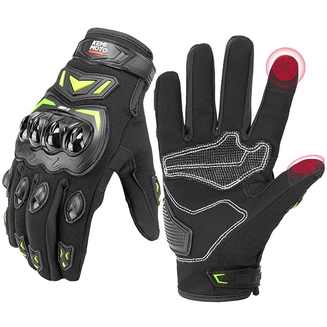 KEMIMOTO バイク グローブ 夏 メッシュ 通気 バイク用グローブ 軽量 スマホ対応 夏用グローブ オートバイ手袋 滑り止め 耐衝撃 プロテクト 春夏秋 グリーン XXL KM402