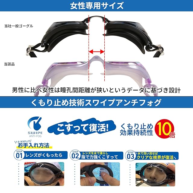 対象年齢:10歳~大人、こするだけでくもり止め効果が復活するSWIPE搭載
