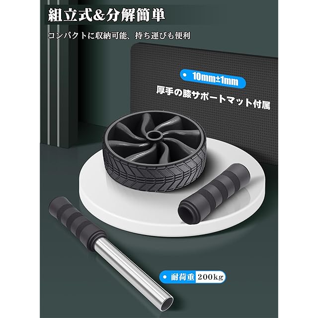 商品名:FEELCAT 腹筋ローラー 1輪 静音 アブローラー スリムトレーナー アブホイール 上半身筋トレ 膝保護マット付き (A- 一輪ブラック)