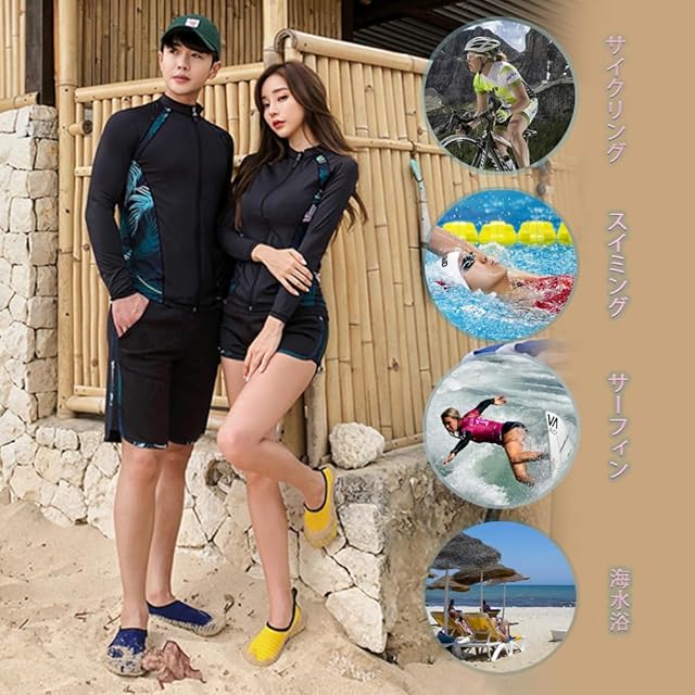 【適用場合&水陸両用】海辺のみならず、軽量なのに伸縮性抜群の生地でとても動きやすく、吸汗・速乾素材なので運動に最適です!夏場のウォータースポーツや野外活動の際、海、ジム、プールやビーチ、、温泉と幅広いジャンルで使える便利なスポーツ・アイテムです。通勤、通学、ランニング、ヨガなど、スポーツウェアとしてもご利用いただけます。水に濡れても快適に活動できる生地を使用。前開き対応のラッシュガードは着脱も簡単です、着替えに便利。