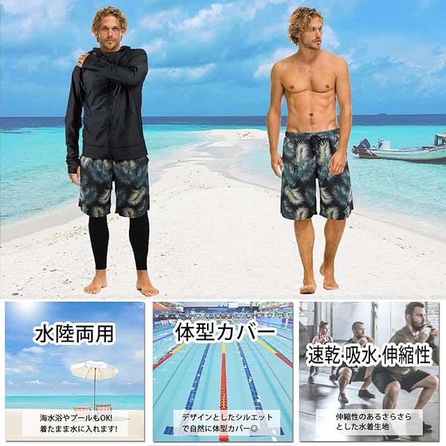 商品名:【ARMOTO】 ラッシュガード メンズ 水着 長袖 パーカー レギンス サーフパンツ フィットネス [UVカット UPF50+・吸汗速乾] 水泳 水陸両用 大きいサイズ