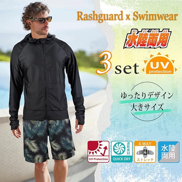 【セット内容】ラッシュガード、レギンス、サーフパンツ。