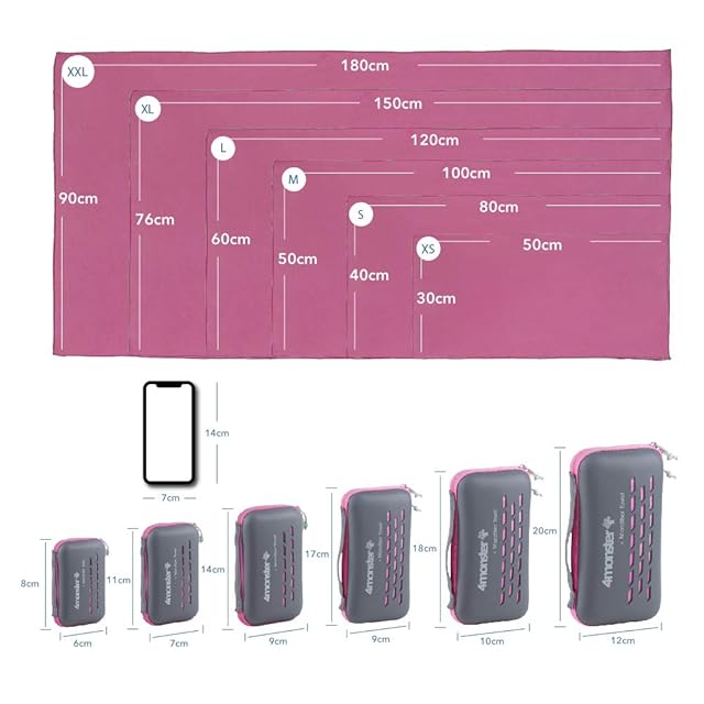 ◆ 【各収納ボックスに1枚タオル】:この速乾タオルには10 色あり、各色には6サイズがあります。XSサイズ: 30*50(cm)、Sサイズ: 40*80(cm)、Mサイズ: 50*100(cm)、Lサイズ: 60*120(cm)、XLサイズ: 75*150(cm)、XXLサイズ: 90*180(cm)、各タオルには収納ボックスが付いています。あなたがこれを買うとき、好きな色と望むサイズが選ぶことができます.