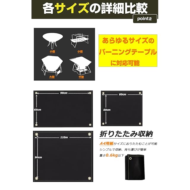 【使用場合】✅最近発売されている小さい焚き火台、軽量焚き火台、その他もろもろ、地面へのダメージをあんまり考慮していないようなものを使っている人は、ぜひこのシートを買って欲しいと思いました。バイクのシートバッグのマフラー焼け防止にも適用です。商標登録番号:第6307890号