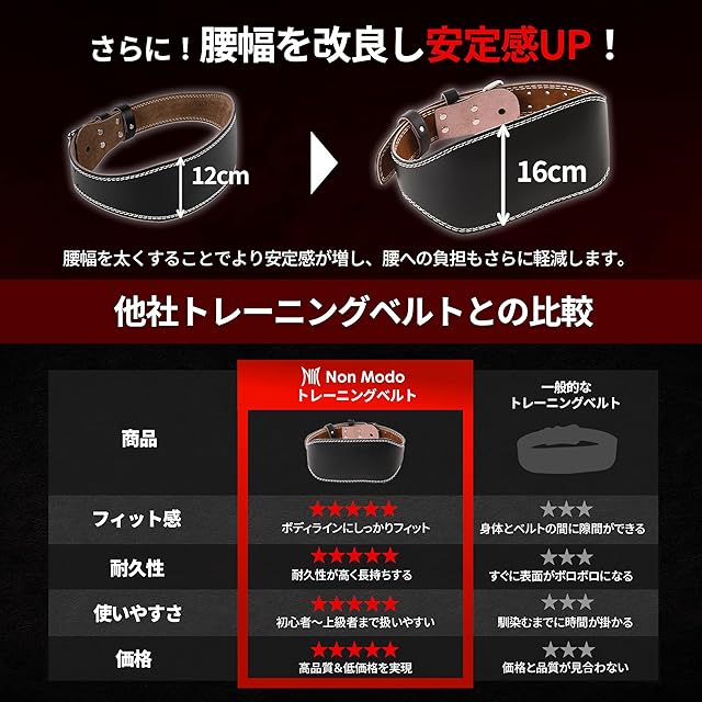 商品名:トレーニングベルト パワーベルト 【パーソナルトレーナーユウジ推奨】 筋トレ ベルト 腰 リフティングベルト NonModo (L)